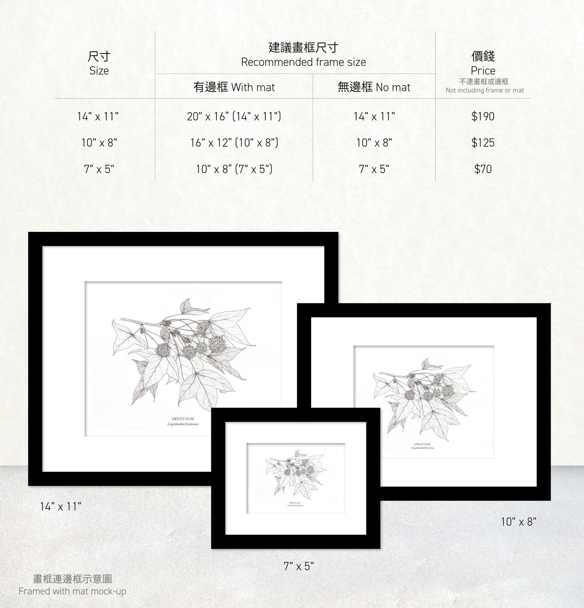 香港生態印刷畫: 楓香 HK Wildlife Art Print: Sweet Gum