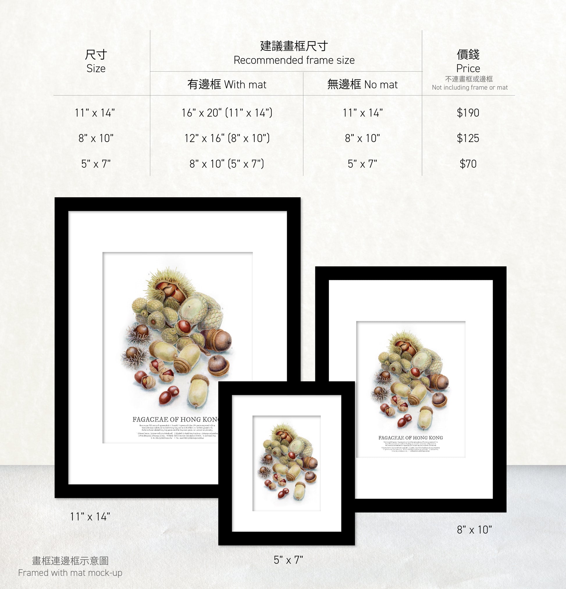 香港生態印刷畫: 精選殼斗科堅果 HK Wildlife Art Print: Selected Fagaceae Nuts