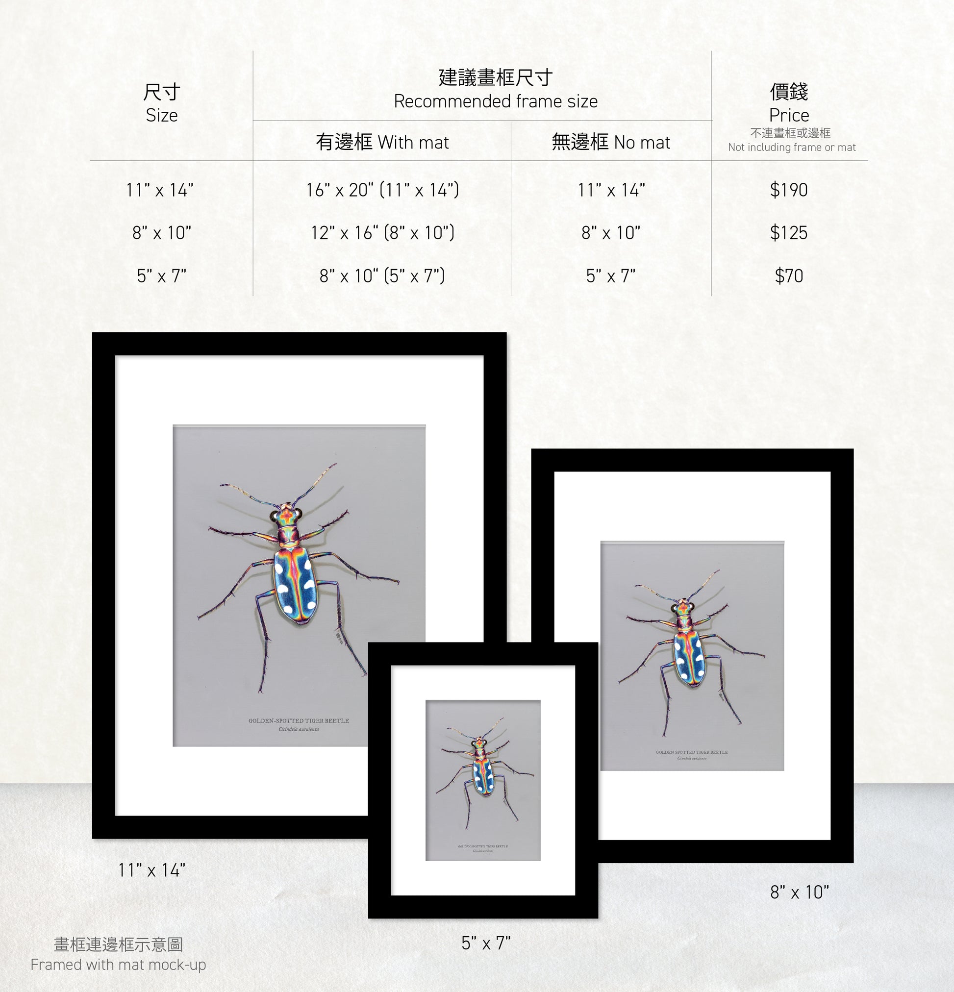 香港生態印刷畫: 金斑虎甲 HK Wildlife Art Print: Golden-spotted Tiger Beetle